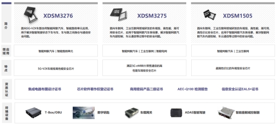 XDSM3276是面向5G-V2X车路协同智能网联汽车、智能路侧单元应用,用于解决智能驾驶状态下车与车、车与路之间身份与通信安全问题。
